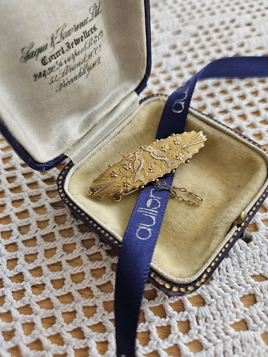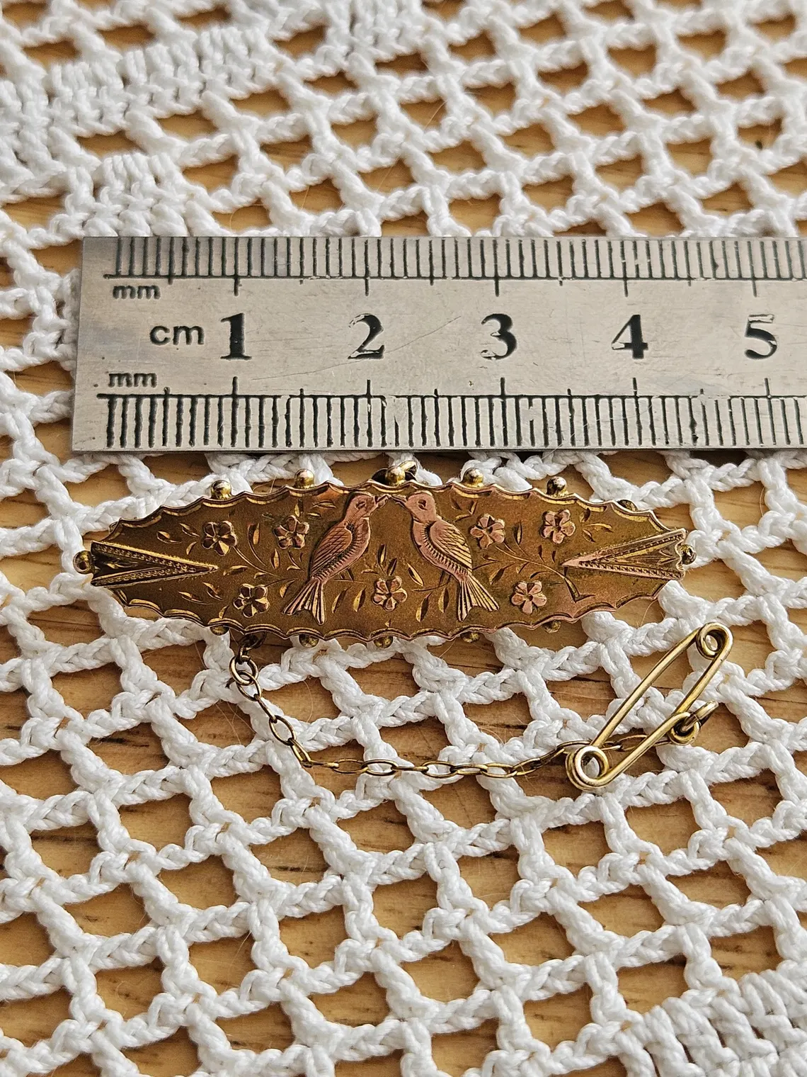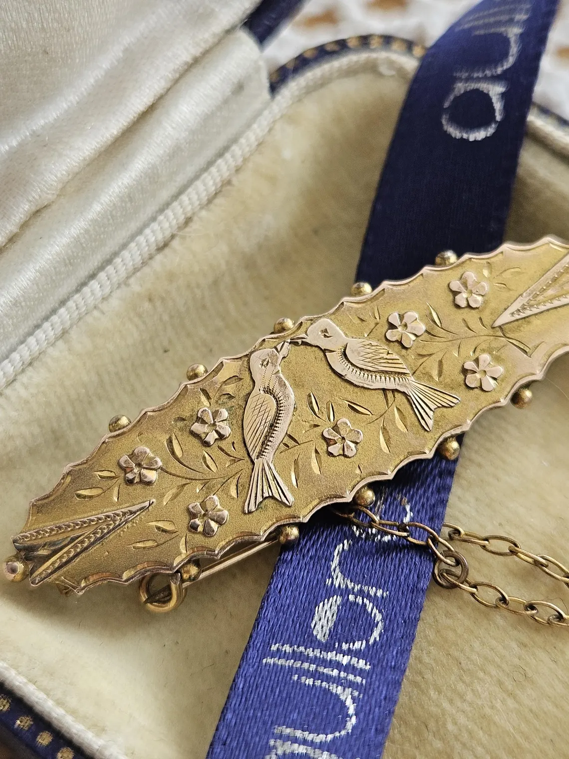 Old Victorian Antique brooch two birds swallows solid gold 9ct 375 with safety chain
