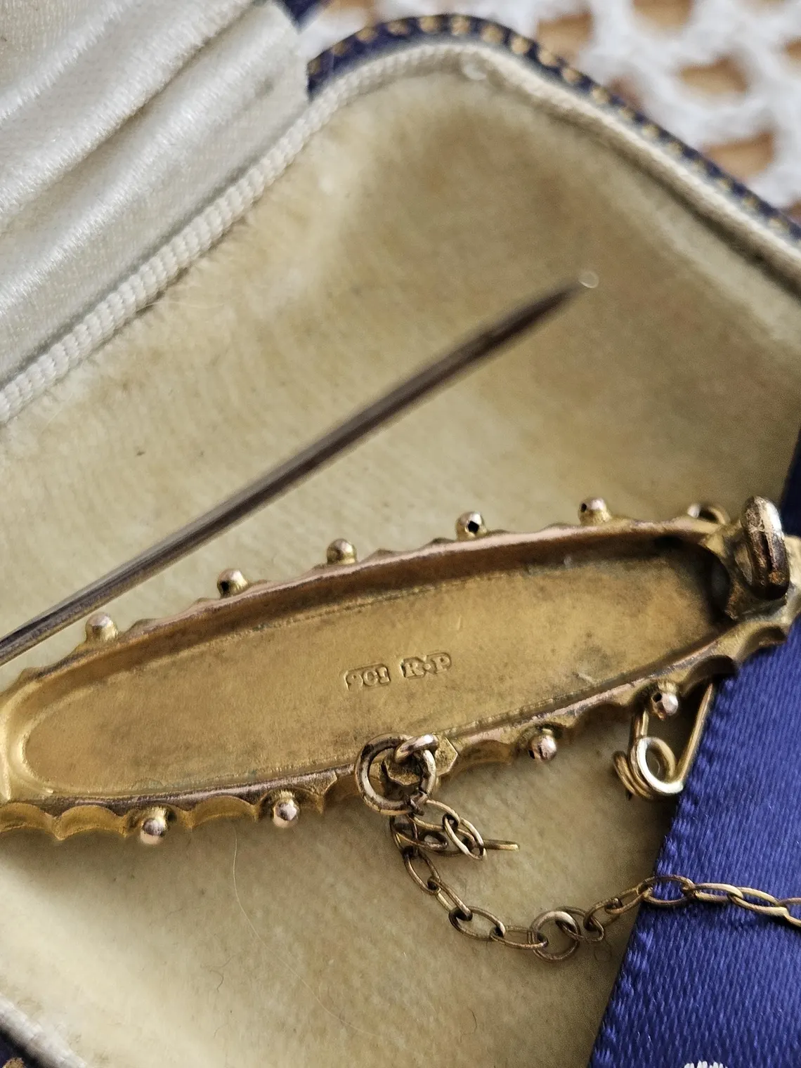 Comments: Pin, hook and safety chain is not made from gold.